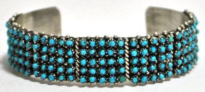 Zuni Turquoise Needlepoint Dots Sterling Silver Cuff Bracelet - Pete & Vivien Haloo