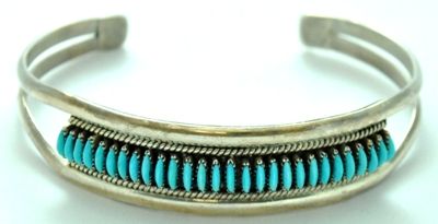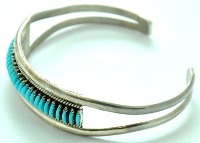 Zuni Turquoise Needlepoint Sterling Silver Cuff Bracelet - Edith Tsabetsaye