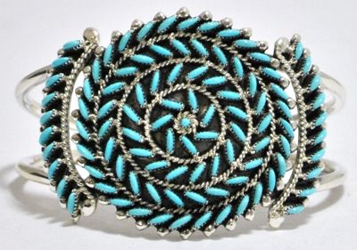 Zuni Turquoise Needlepoint Sterling Silver Cuff Bracelet - Octavius & Irma Seowtewa