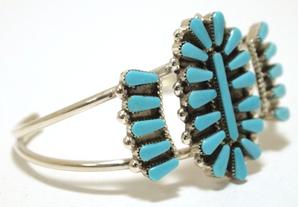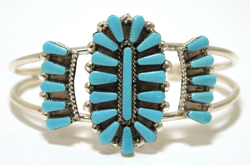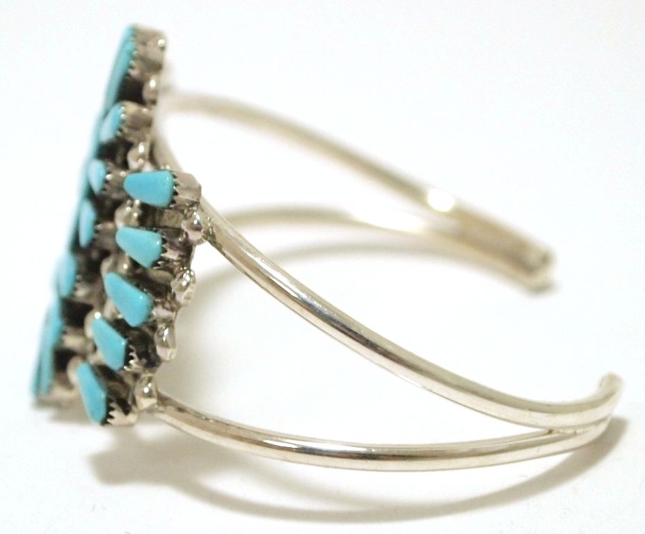 Zuni Turquoise Needlepoint Sterling Silver Cuff Bracelet - Valencia Halusewa