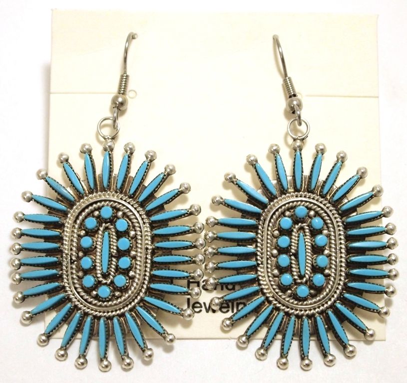 Zuni Turquoise Needlepoint Sterling Silver French Hook Earrings - Eva Booqua
