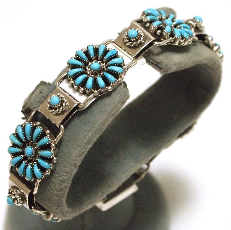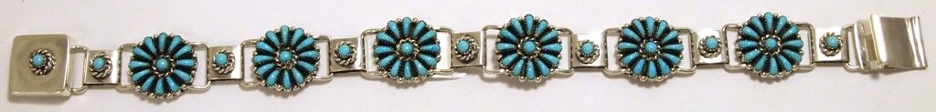 Zuni Turquoise Needlepoint Sterling Silver Link Bracelet - Josie Owaleon