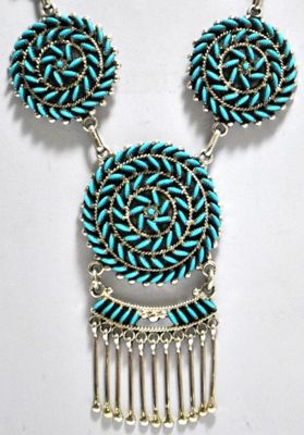 Zuni Turquoise Needlepoint Sterling Silver Necklace - Octavius & Irma Seowtewa