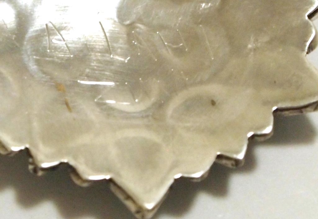 Measures 1-1/4" tall by 1-1/4" wide. Pin on back measures 7/8". Pendant hanger hole inside measures 1/8".