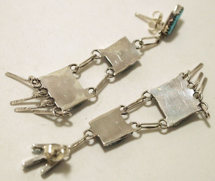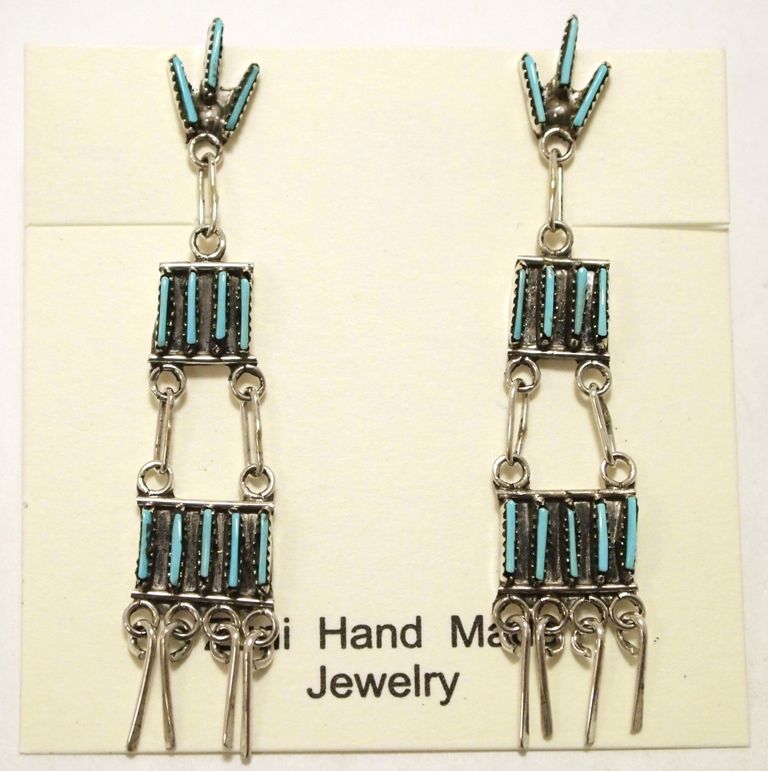 Zuni Turquoise Needlepoint Sterling Silver Post Earrings - Arlene Quam