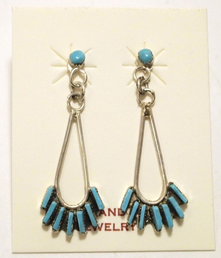 Zuni Turquoise Needlepoint Sterling Silver Post Earrings - Iva Lasiloo