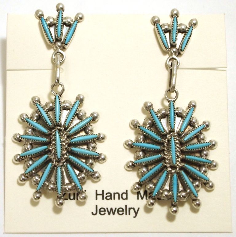 Zuni Turquoise Needlepoint Sterling Silver Post Earrings - Lance & Cordelia Waatsa