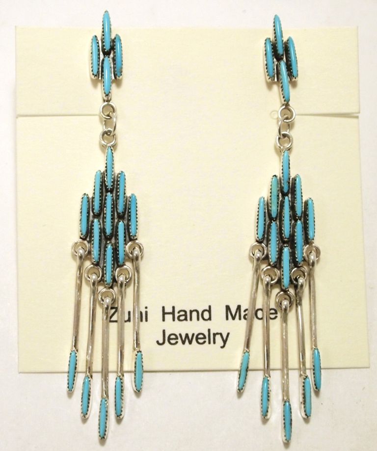 Zuni Turquoise Needlepoint Sterling Silver Post Earrings - Tyler Lastiyano
