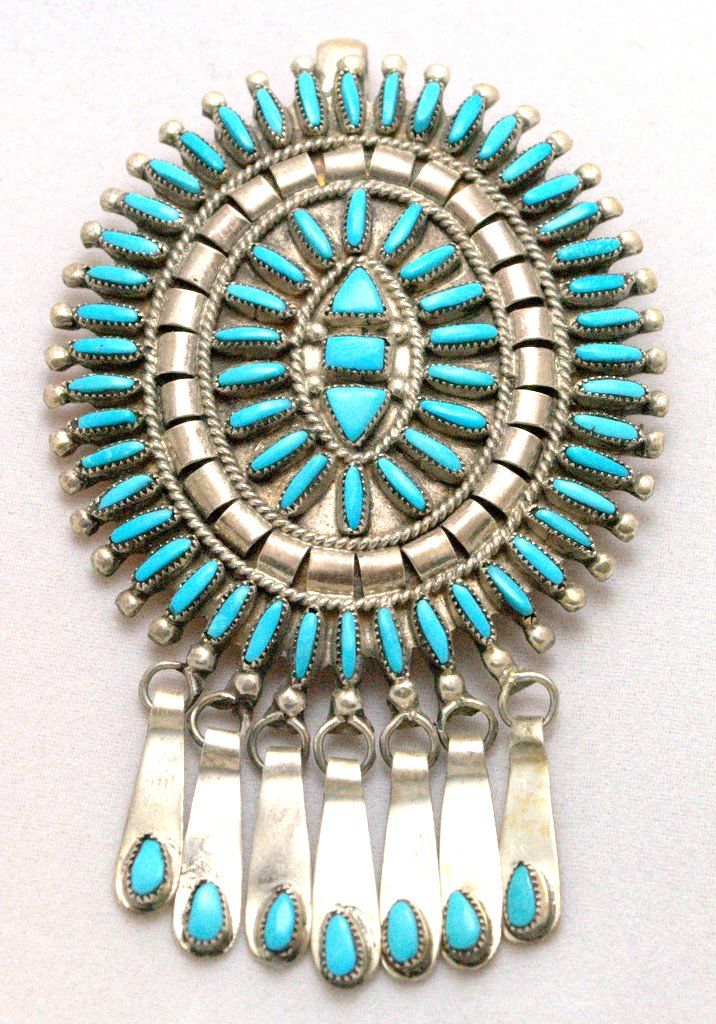 Zuni Turquoise Oval with 7 Hangers Pendant & Pin