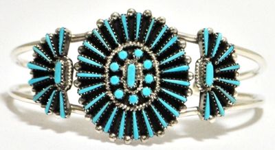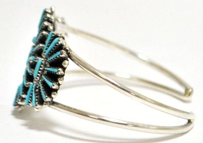 Zuni Turquoise Petit Point Cluster Sterling Silver Cuff Bracelet - Shirley Lahi