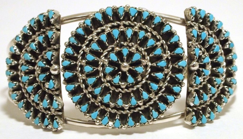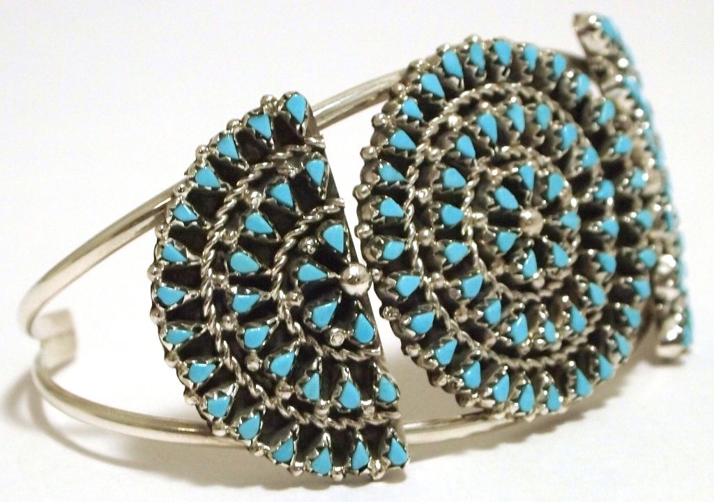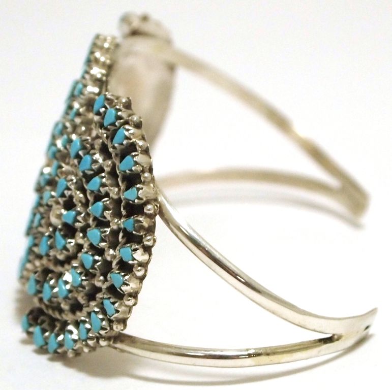 Zuni Turquoise Petit Point Sterling Silver Cuff Bracelet - Trudy Quetawaki