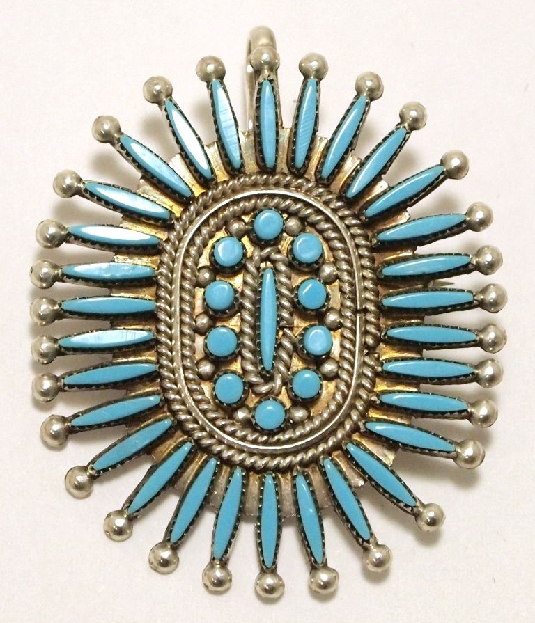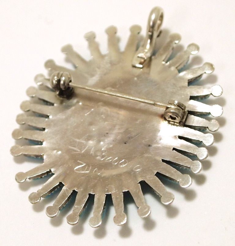 Zuni Turquoise Petit Point Sterling Silver Pendant & Pin - Iva Booqua