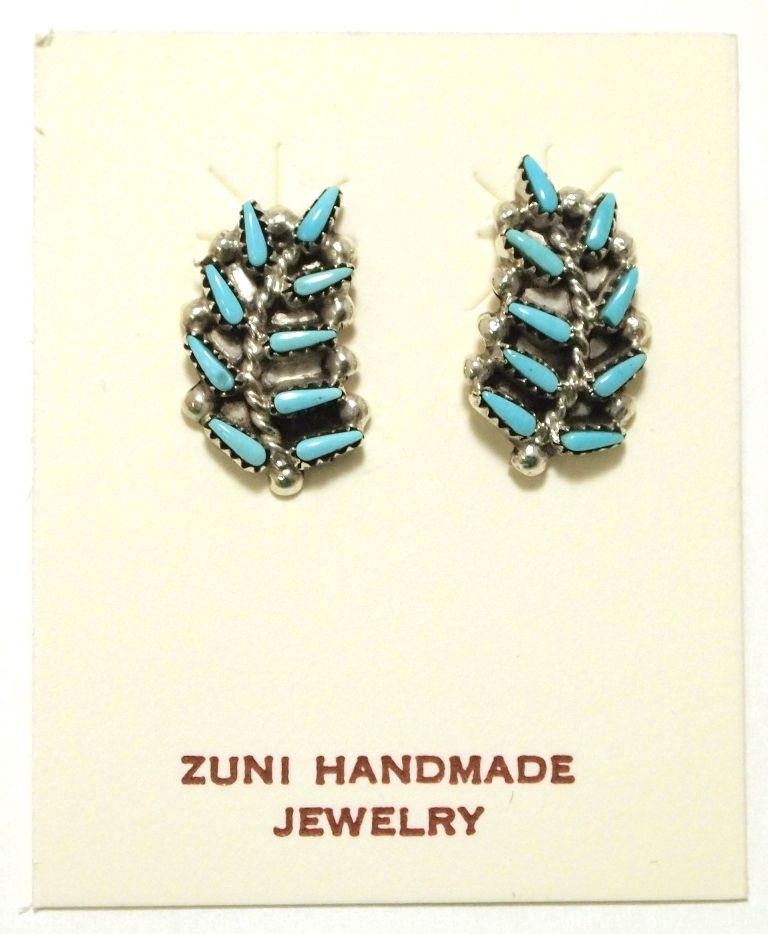 Zuni Turquoise Petit Point Sterling Silver Post Earrings - Jennie Gasper