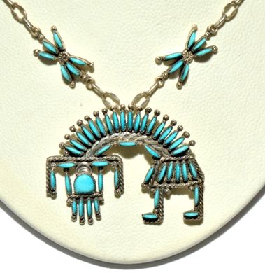 Zuni Turquoise Rainbow Kachina Necklace - Hugh & Agnes Bowekaty