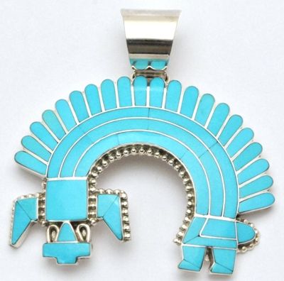 Zuni Turquoise Rainbow Kachina Sterling Silver Pendant - Fadrian & Vivica Bowannie