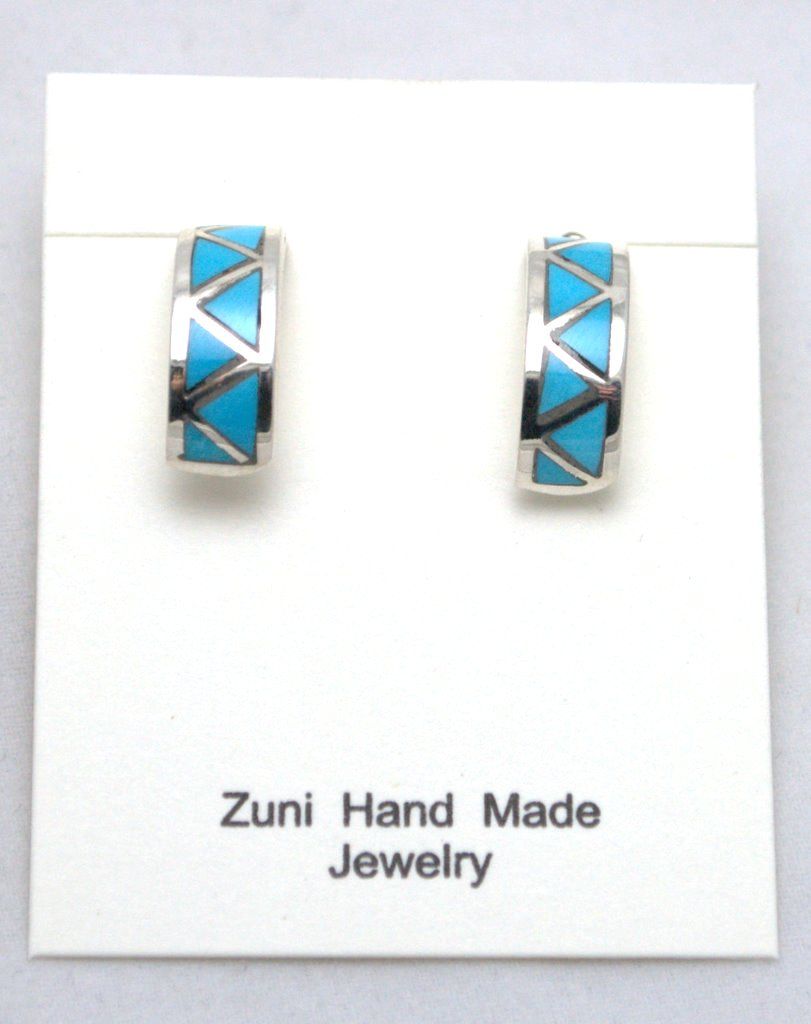 Zuni Turquoise Small Half-Ring Zig-Zag Design Earrings