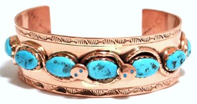 Zuni Turquoise Snake Copper Cuff Bracelet - Effie Calavaza