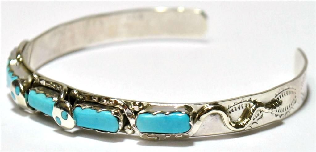 Zuni Turquoise Snake Sterling Silver Cuff Bracelet - Effie Calavaza
