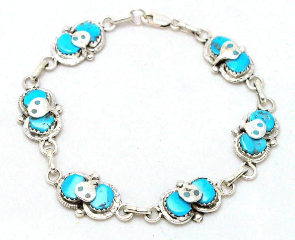 Zuni Turquoise Snake Sterling Silver Link Bracelet - Effie Calavaza