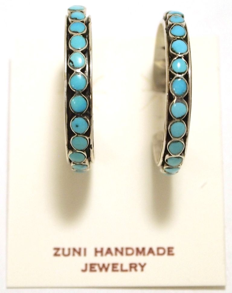 Zuni Turquoise Sterling Silver 3/4-Ring Post Earrings - Everett Abeita