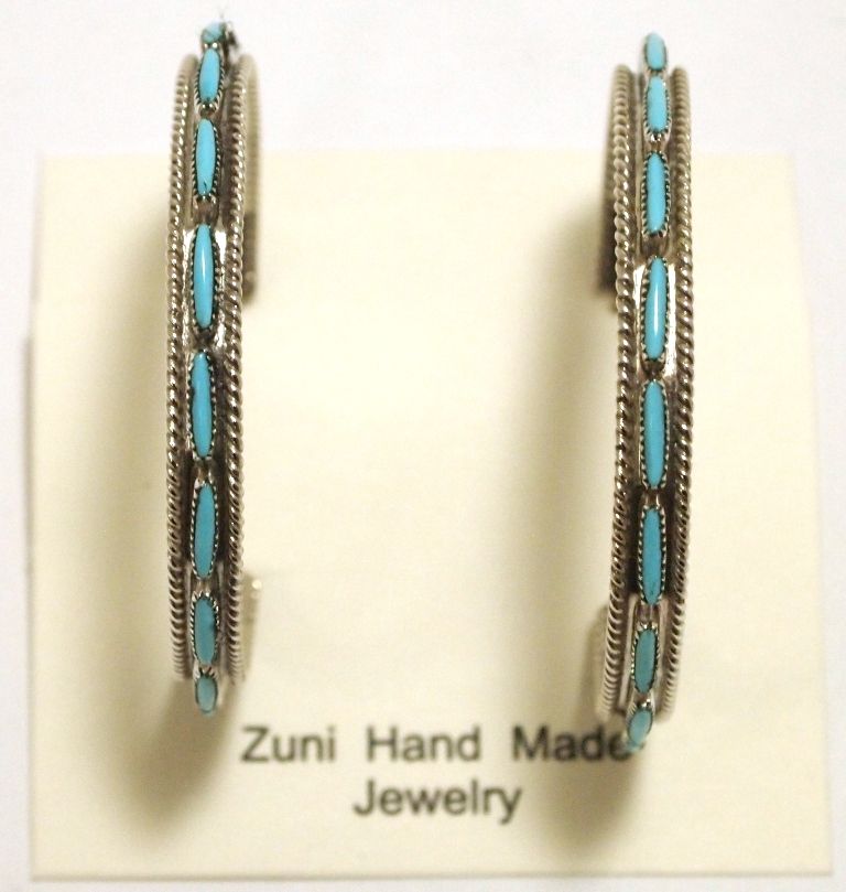 Zuni Turquoise Sterling Silver 3/4 Ring Post Earrings - Shirley Quam