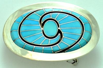 Zuni Turquoise Sterling Silver Buckle - Dickie Quandelacy
