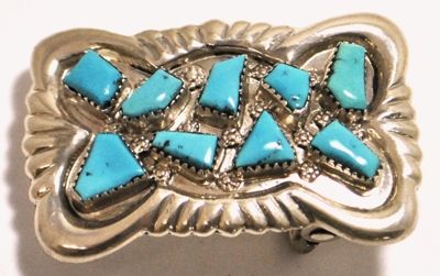 Zuni Turquoise Sterling Silver Buckle - George & Lupeta Leekity