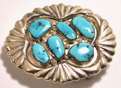 Zuni Turquoise Sterling Silver Buckle - George & Lupeta Leekity