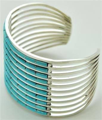 Zuni Turquoise Sterling Silver Cuff Bracelet - Anselm Wallace
