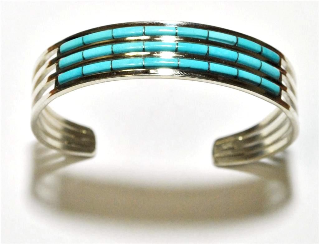 Zuni Turquoise Sterling Silver Cuff Bracelet - Anselm Wallace