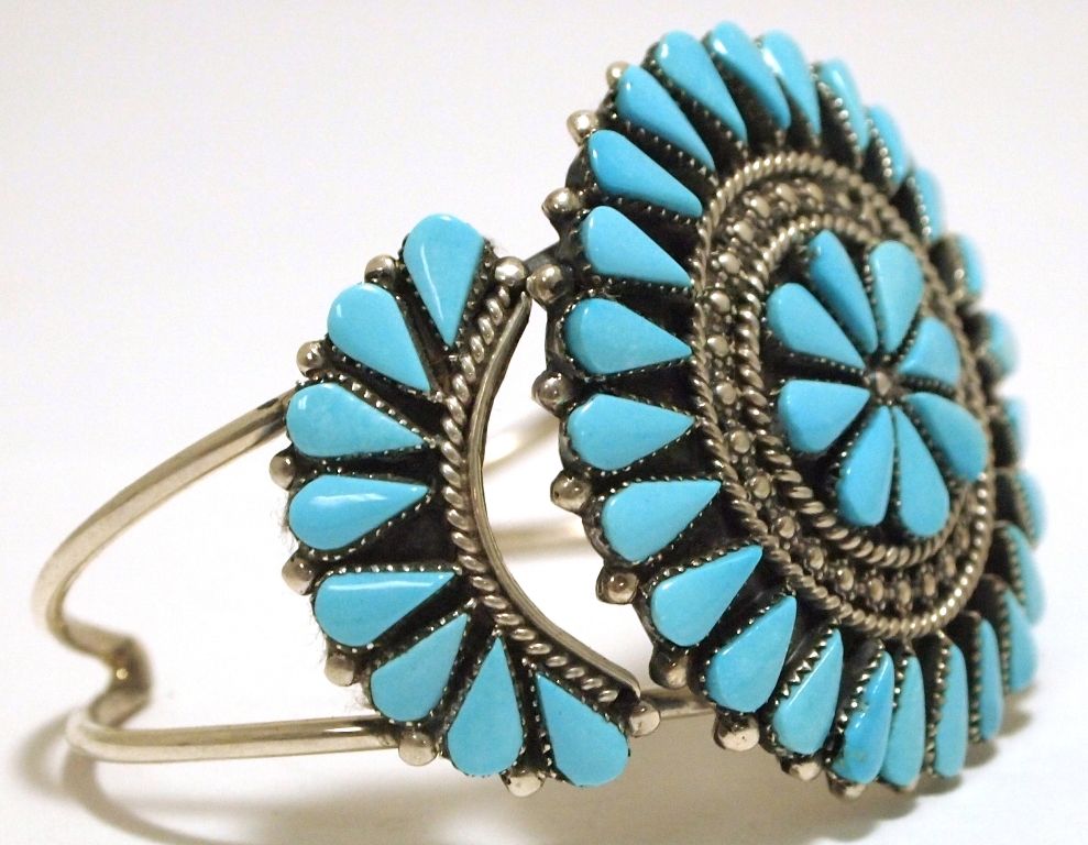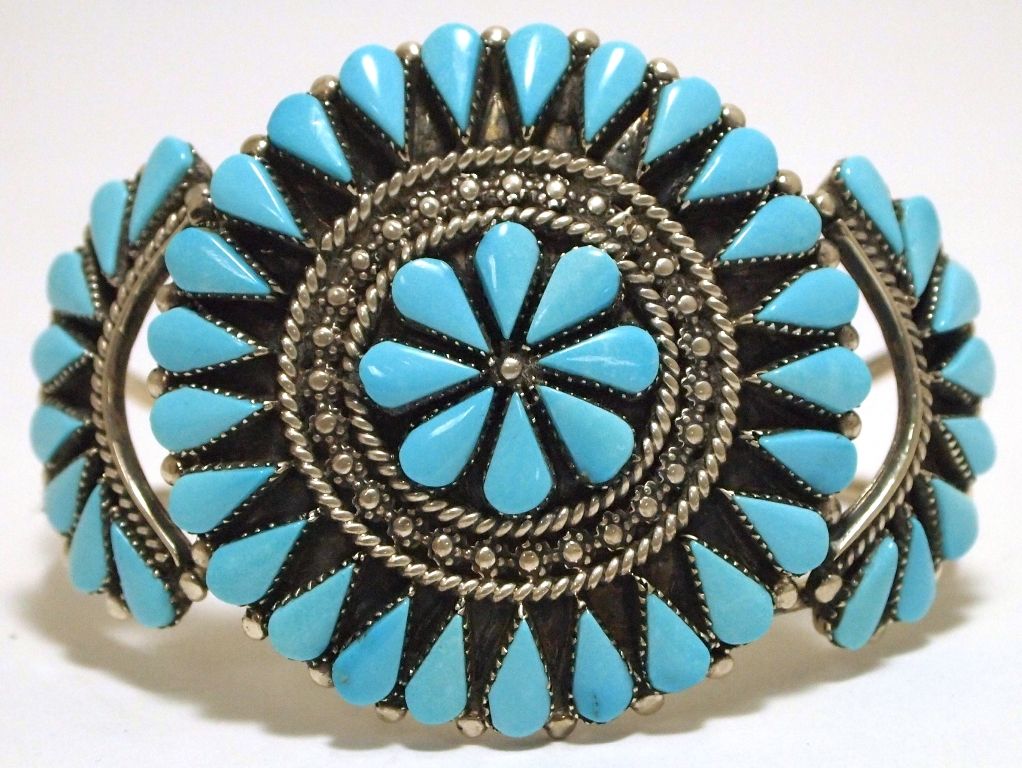 Zuni Turquoise Sterling Silver Cuff Bracelet - Augustine Pinto