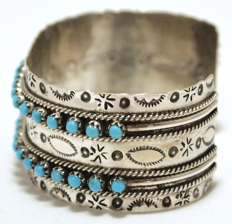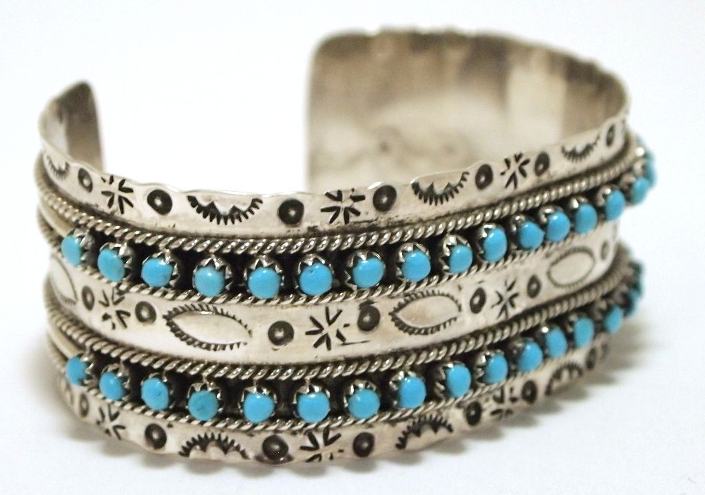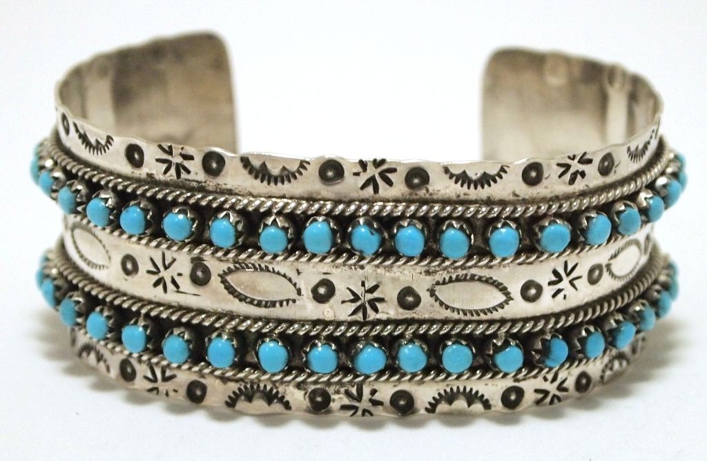 Zuni Turquoise Sterling Silver Cuff Bracelet - JP Ukestine