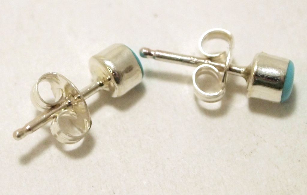 Zuni Turquoise Sterling Silver Dot Post Earrings - Wiston Kalestewa