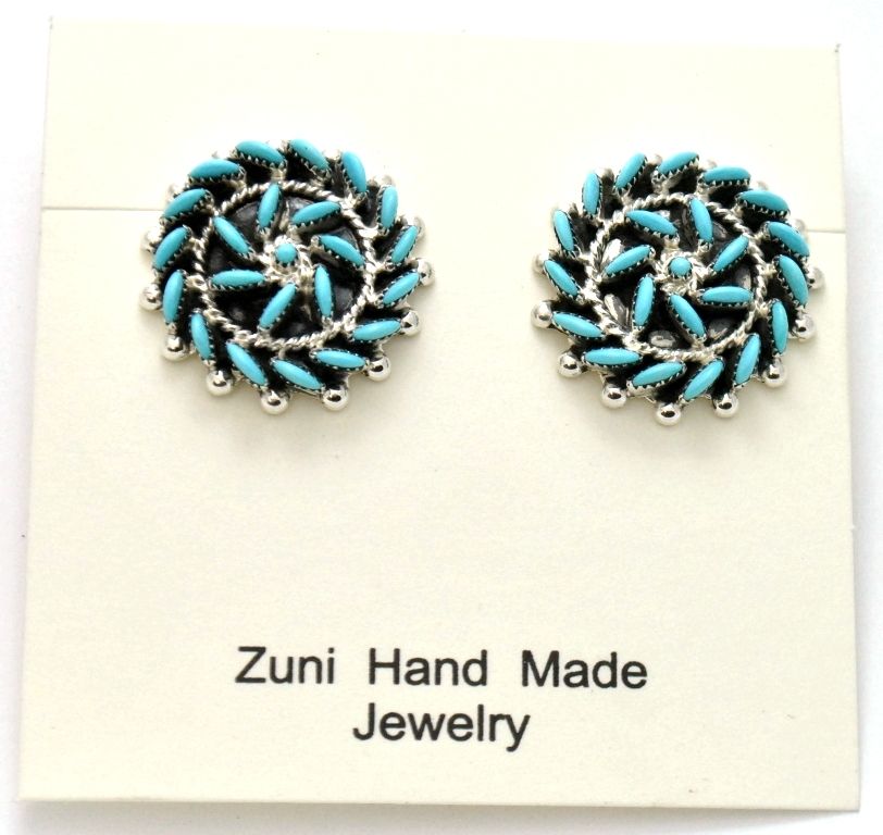 Zuni Turquoise Sterling Silver Earrings - Octavius & Irma Seowtewa