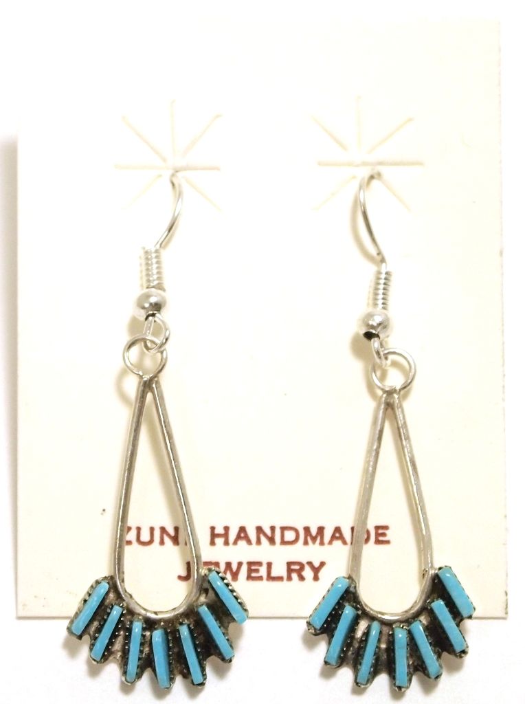 Zuni Turquoise Sterling Silver French Hook Earrings - Iva Lasiloo
