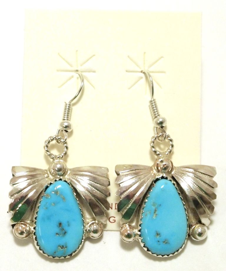 Zuni Turquoise Sterling Silver French Hook Earrings - Loyolita Othole