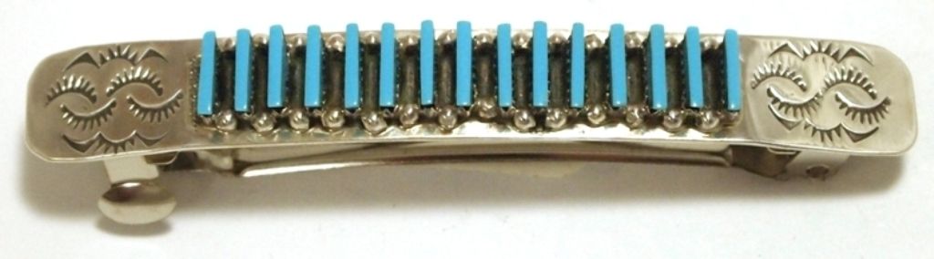 Zuni Turquoise Sterling Silver Hair Barrette - Raynard Lastyone