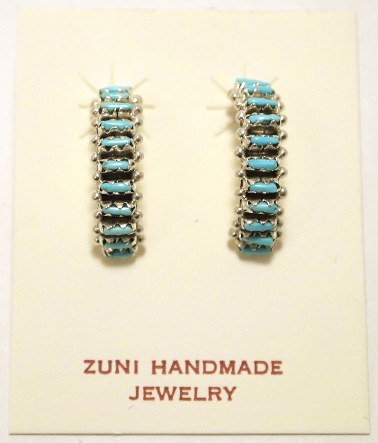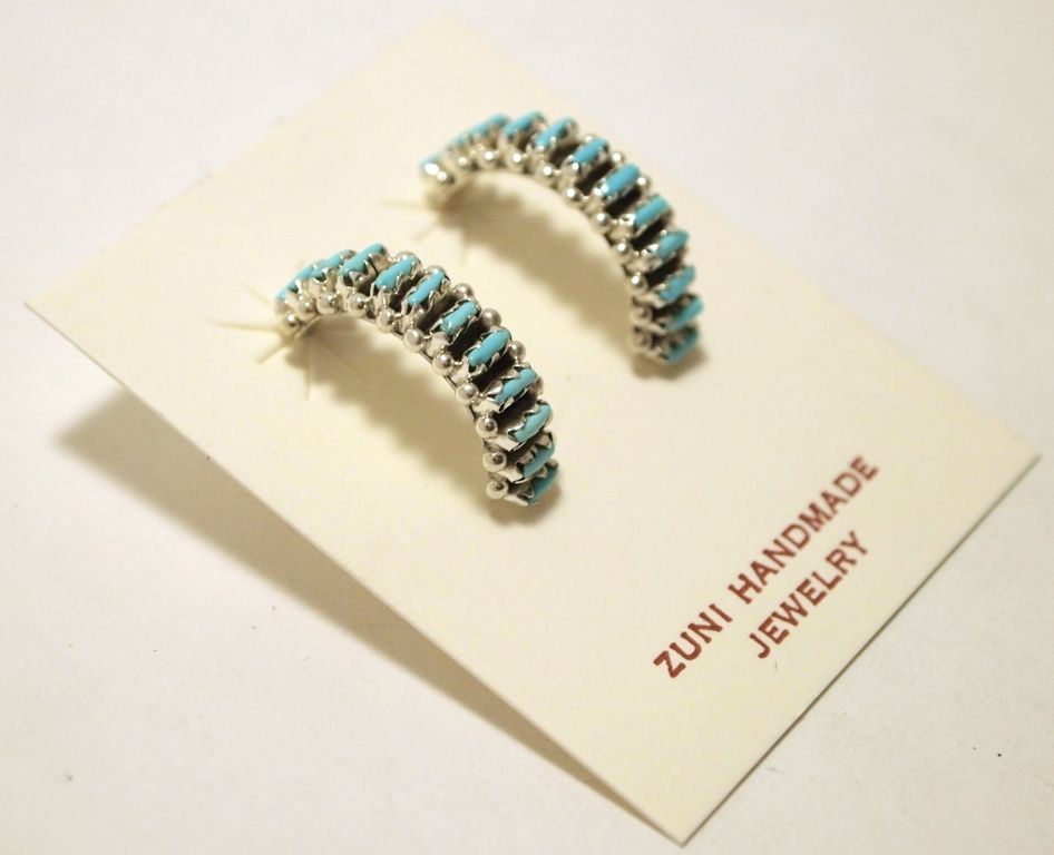 Zuni Turquoise Sterling Silver Half-Ring Post Earrings - Roland Quam