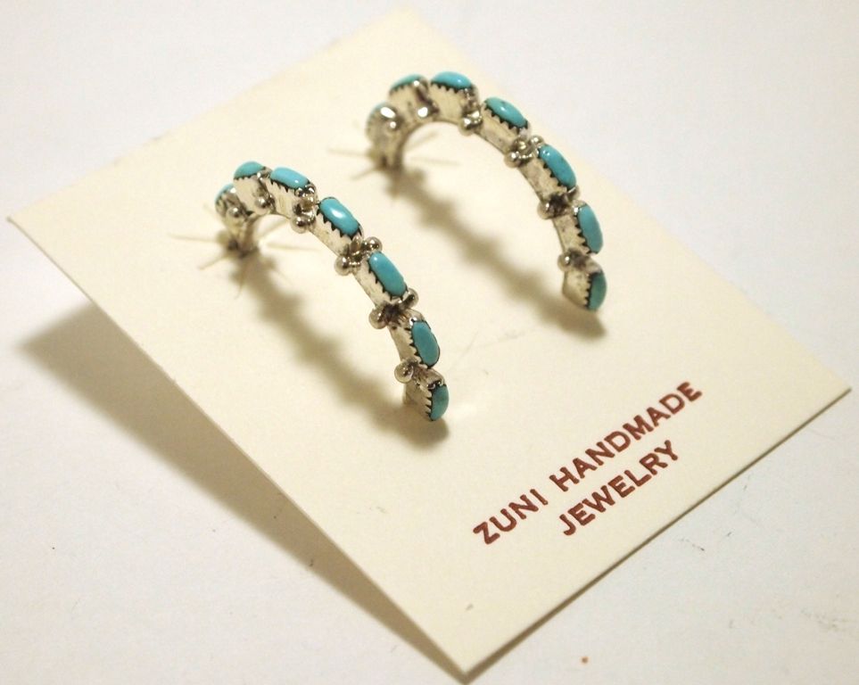 Zuni Turquoise Sterling Silver Half-Ring Post Earrings - Tomasita Lasarille