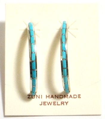 Zuni Turquoise Sterling Silver Half-Ring Post Earrings