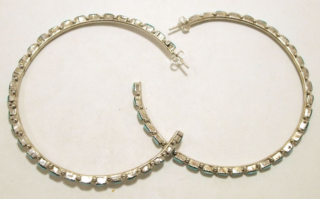 Zuni Turquoise Sterling Silver Hoop Post Earrings - Alvin Hughte