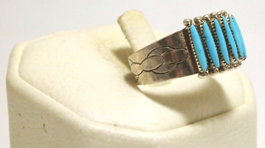 Zuni Turquoise Sterling Silver Men's Ring - Shirley Quam