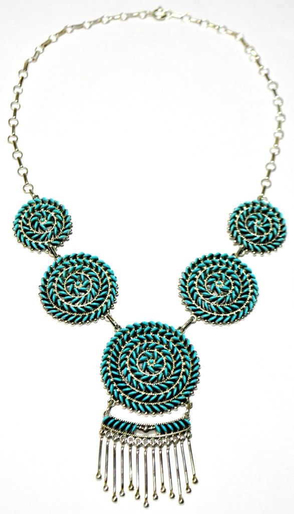 Zuni Turquoise Sterling Silver Necklace & Earrings Set - Octavius & Irma Seowtewa
