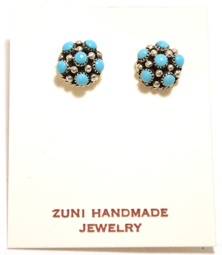 Zuni Turquoise Sterling Silver Post Earrings - Dickie Charlie