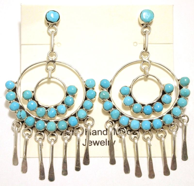 Zuni Turquoise Sterling Silver Post Earrings - Erma Esalalio