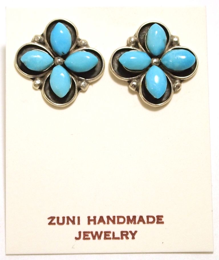 Zuni Turquoise Sterling Silver Post Earrings - Kenneth Natewa