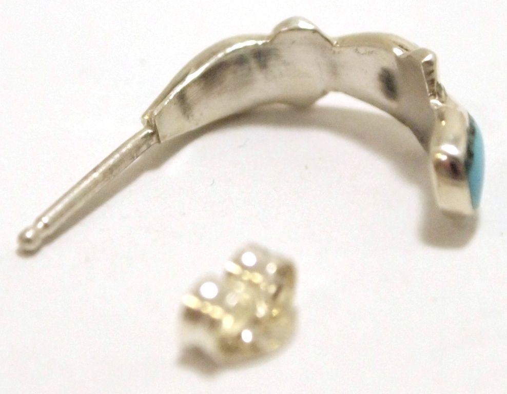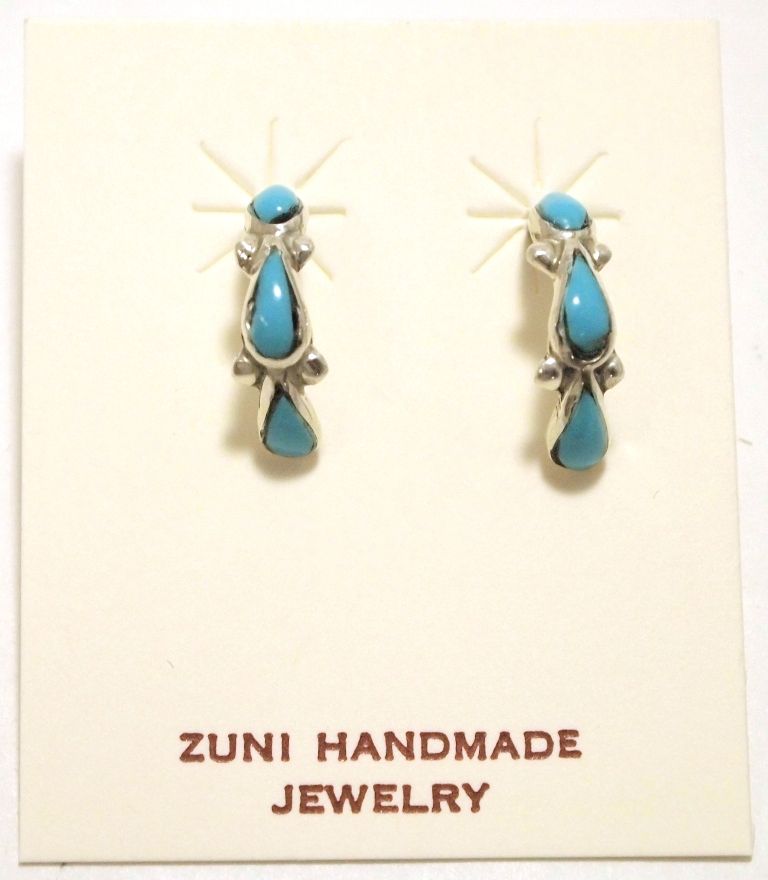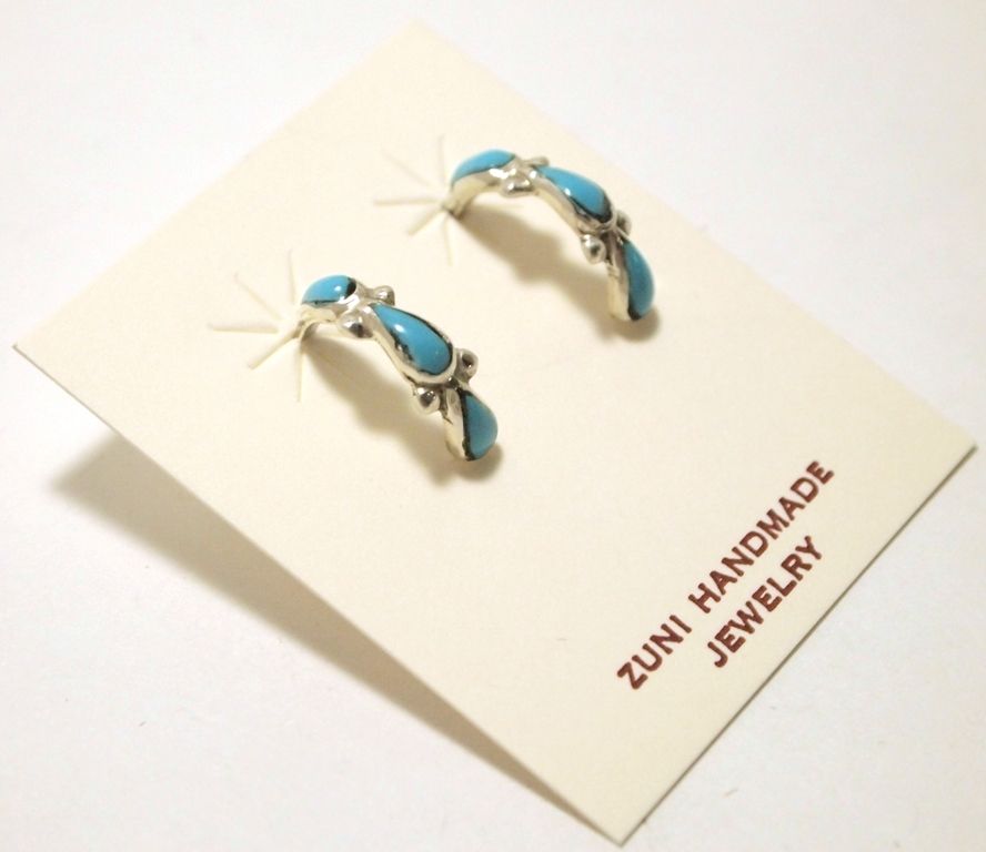 Zuni Turquoise Sterling Silver Small Half-Ring Post Earrings - Bryce Vacit