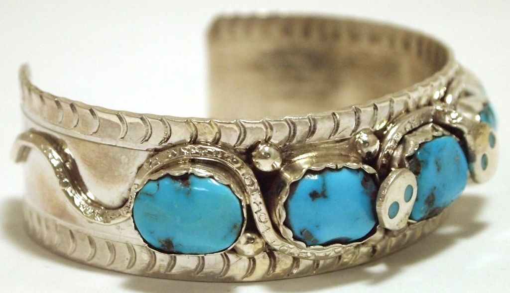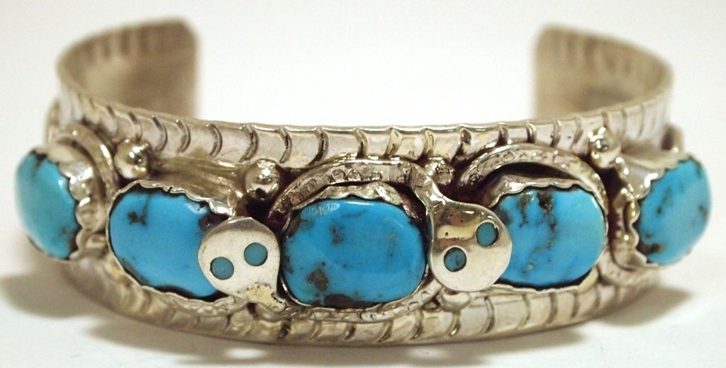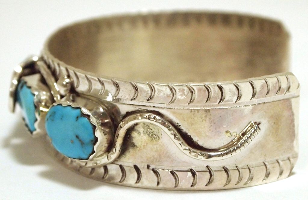 Zuni Turquoise Sterling Silver Snake Cuff Bracelet - Effie Calavaza