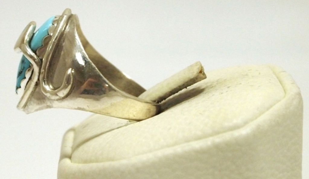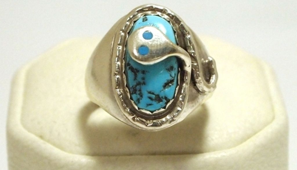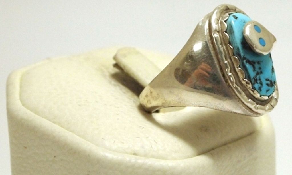 Zuni Turquoise Sterling Silver Snake Men's Ring - Effie Calavaza
