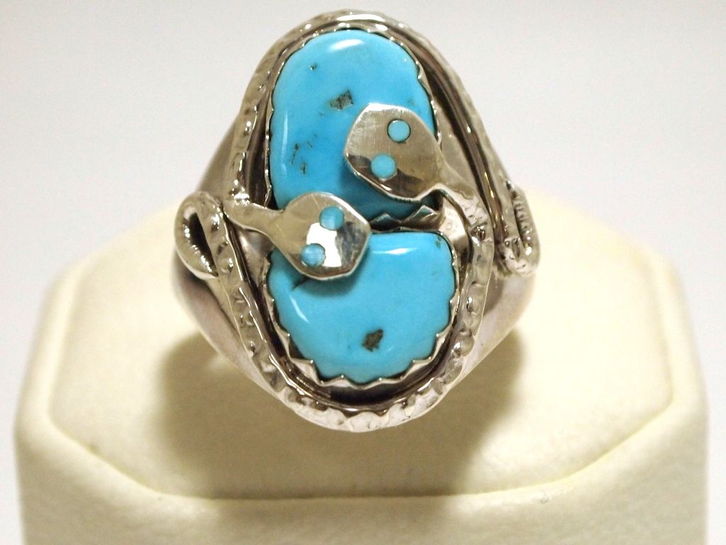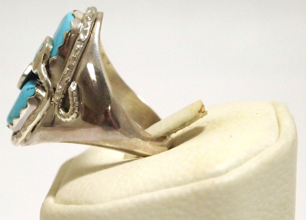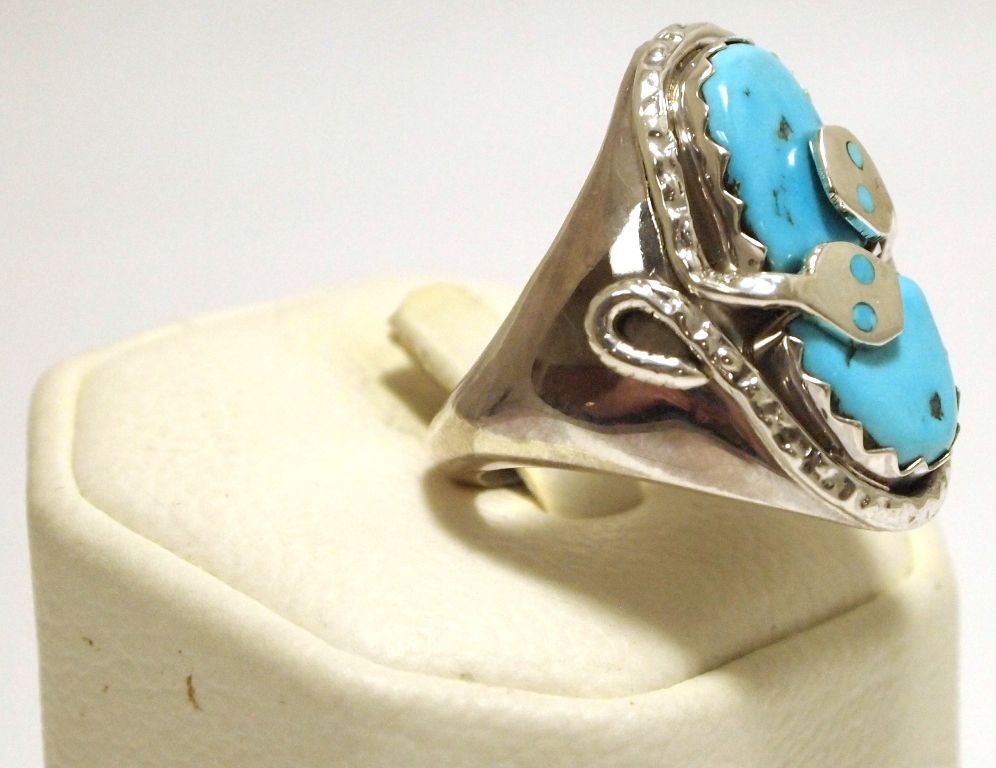 Zuni Turquoise Sterling Silver Snake Men's Ring - Effie Calavaza